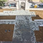Po restavriranju urine številčnice, notranjosti z rekonstrukcijo stopnišča, restavriranju angela smo se naposeld lotili obnove zunanjosti 46,4m visokega zvonika. Kamnit zvonik iz istrskega apnenca in fliša je bil v zelo slabem stanju (kamniti elementi so bili razpokani, vezi so korodirale, prisotna je bila vegetacija, velik del trupa je močno poškodovala erozija..). Odstraniti je bilo potrebno sekundarno betonsko prevleko piramidne špice in druge neustrezne dopolnitve. Z opeko zidano špico smo ojačali s sodobnimi materiali in jo preplastili. Vegetacijo, obloge in nečistoče na kamnitih elementih smo odstranili, nato pa sanirali razpoke in poškodbe ter dopolnili praznine.