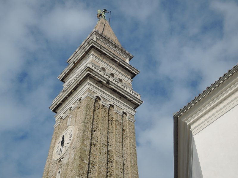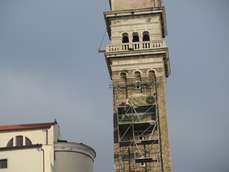 Ura  zvonika cerkve sv. Jurija v Piranu je bila zaradi dotrajanosti vezi posameznih kamnitih elementov na robu propada. Delovni oder je bil postavljen zgolj na južni strani zvonika. Odstranjena sta bila stara kazalca in demontirani najbolj kritični posamezni kamniti elementi. Demontirani deli so bili očiščeni z visokotlačno abrazijo v ateljeju. deli, ki so ostali pa in-situ. Kose se je namestilo v prvotna ležišča v celoto. Številčnica se je poslikala.